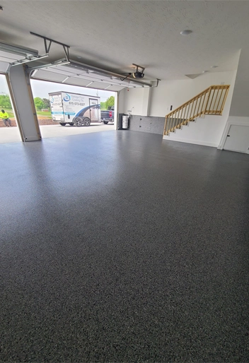 We use polyaspartic and epoxy products designed for real life use. The coatings resist oil, chemicals, moisture, and heavy traffic while staying easy to clean.